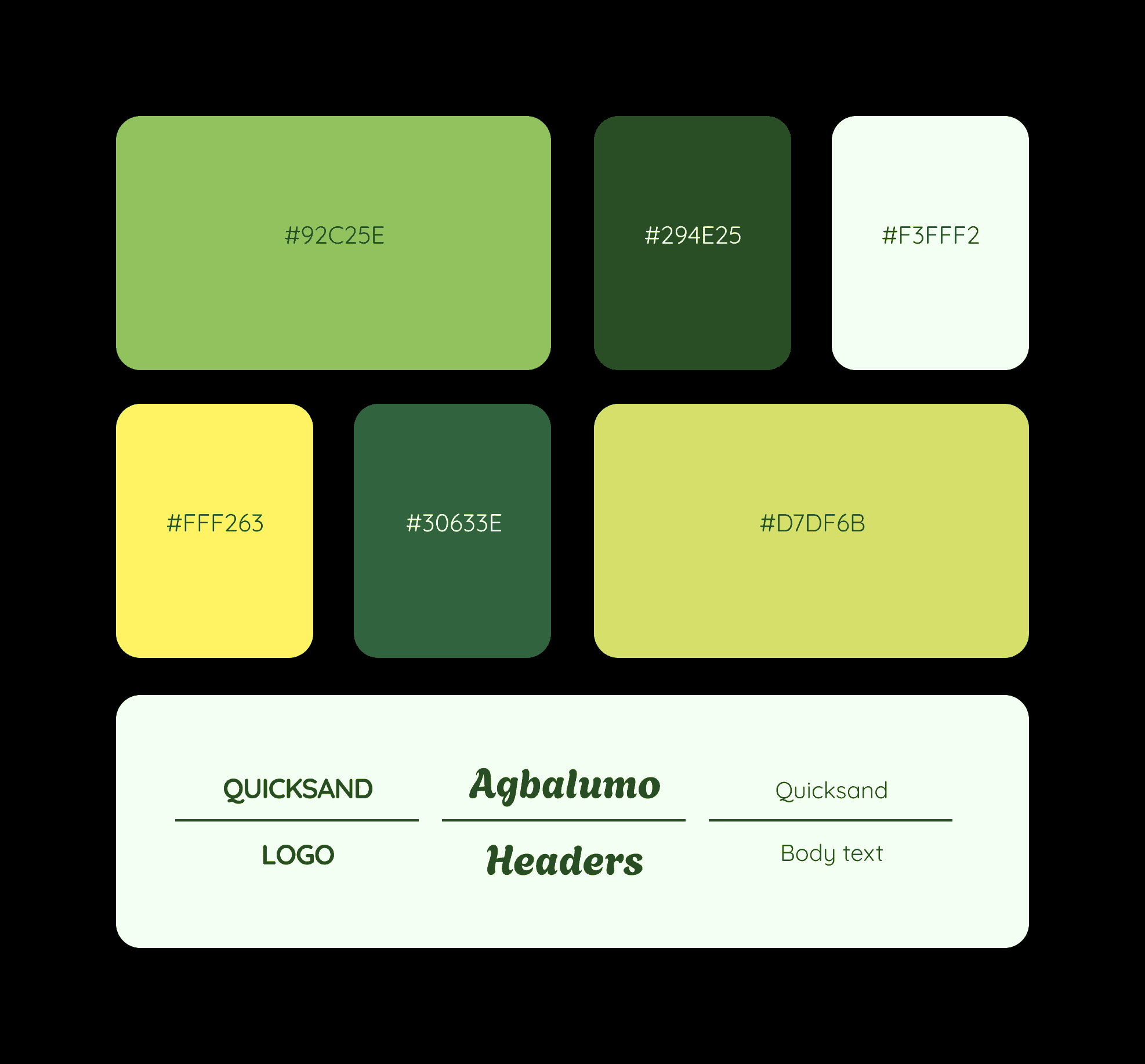 We chose free fonts for the website, with Quicksand as the main font. We replaced the previous logo font with Quicksand to ensure free commercial use, addressing the owner's prior unfamiliarity with font licensing. We incorporated the owner's wish for a plant-like decorative font by selecting Adbalumo for headers.