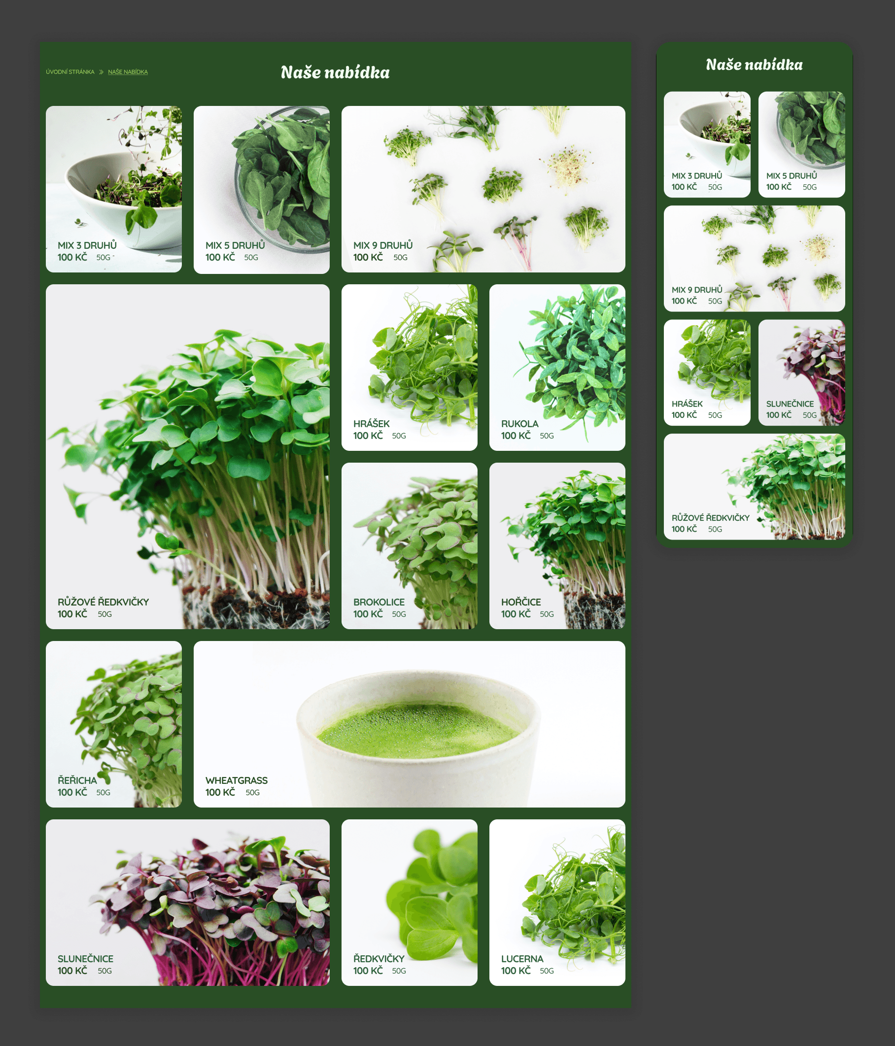 Because the primary objective of the website is e-commerce for the farm's microgreens, we designed a simple and clear user experience for the purchasing process. The farm's e-shop stands out because it doesn't store inventory. All plants are best for consumption on a specific day after planting, so they are grown to order, and harvested twice weekly, with same-day distribution for optimal freshness.