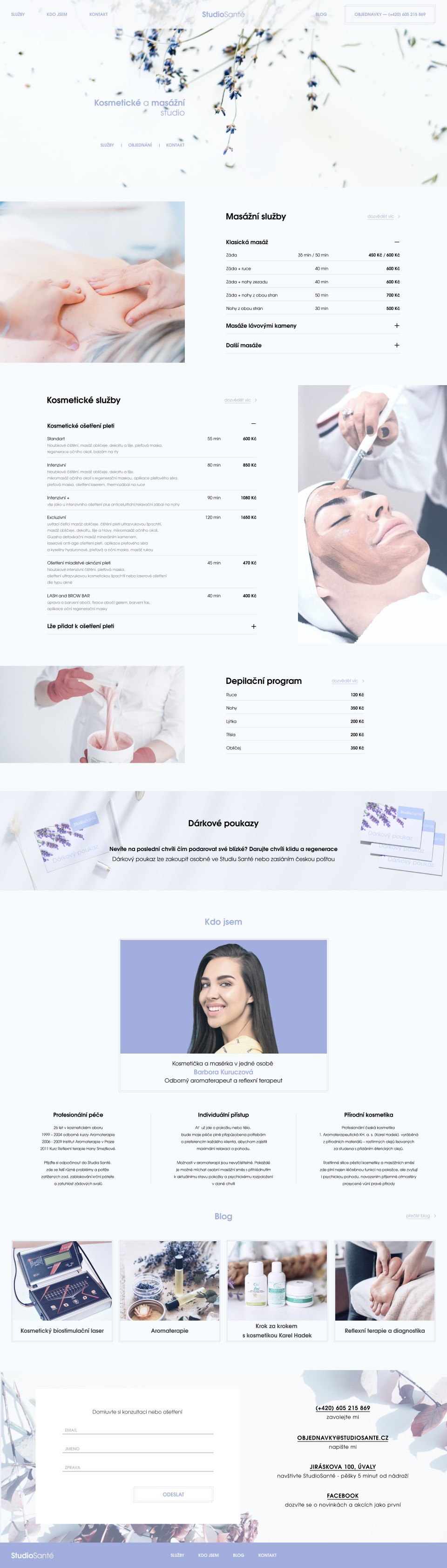 A landing-style homepage highlighting all crucial information, including a pricelist, reasons to choose the studio, a blog preview, and a contact form.