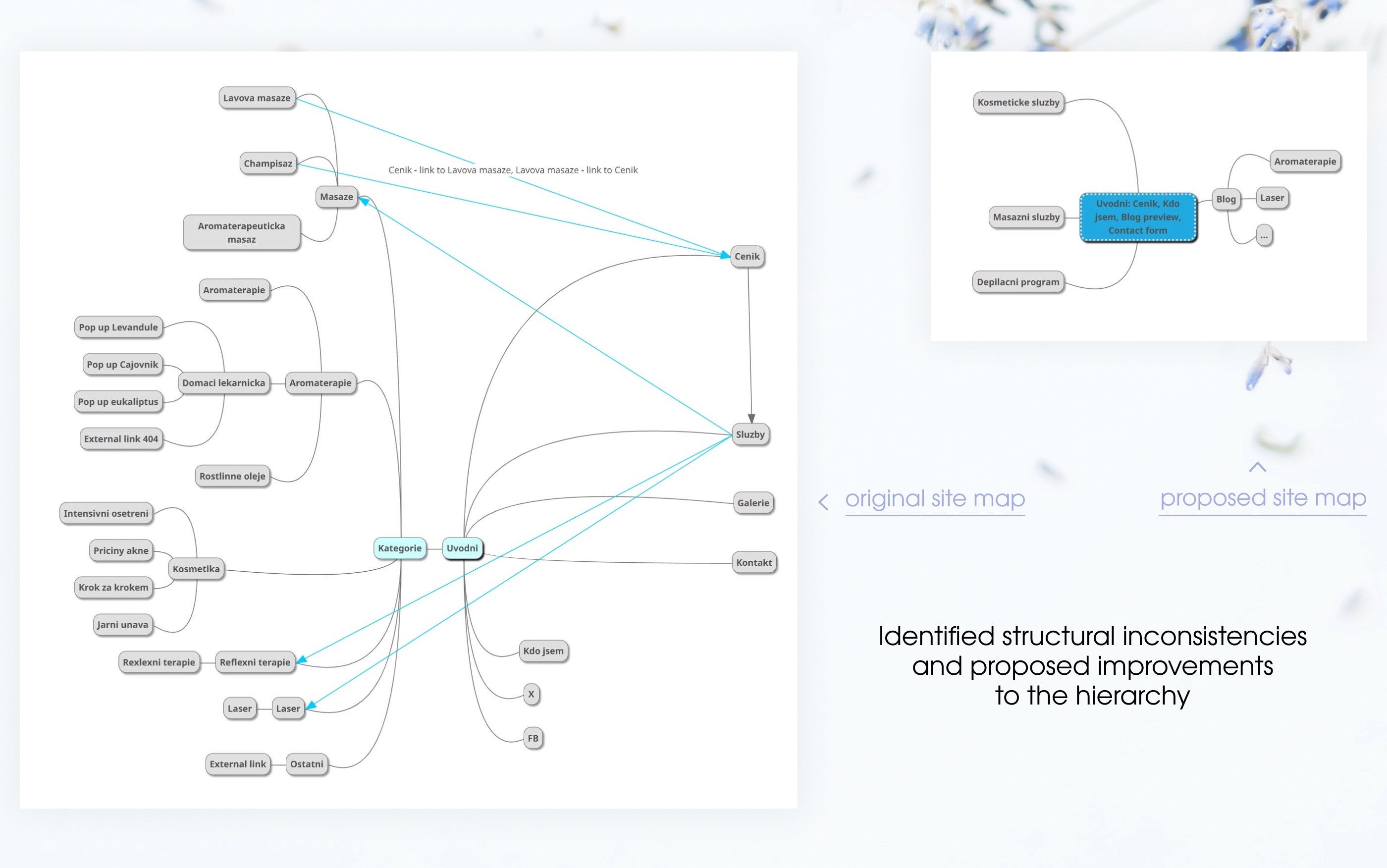 Interestingly, no massage or cosmetology studios in Úvaly or the surrounding area maintain a web presence. To gain broader insights, I analyzed websites for similar studios in Prague and other EU capitals. While not direct competitors, these websites provided valuable reference points for sitemaps, information sharing, and price presentation strategies. Additionally, I explored Awwwards for award-winning examples within this niche.
